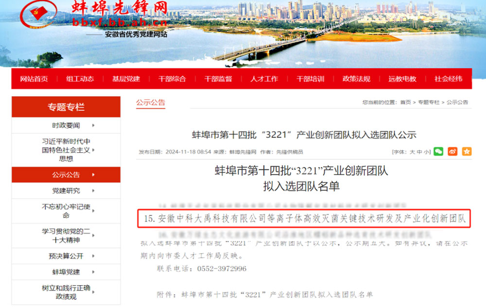 中科大禹入選蚌埠市第十四批“3221”產(chǎn)業(yè)創(chuàng)新團(tuán)隊